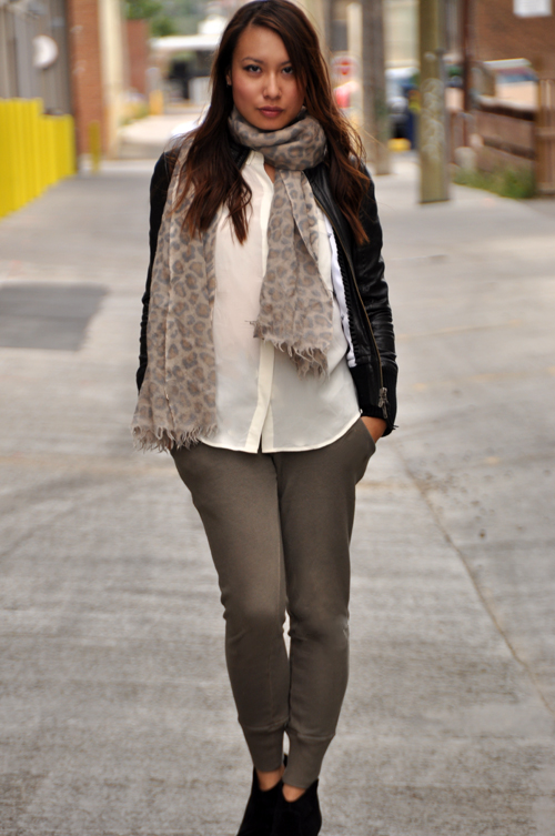 Sweatpants: Wilfred Free (Aritzia) / Scarf: Wilfred (Aritzia) / Booties: Report (here)